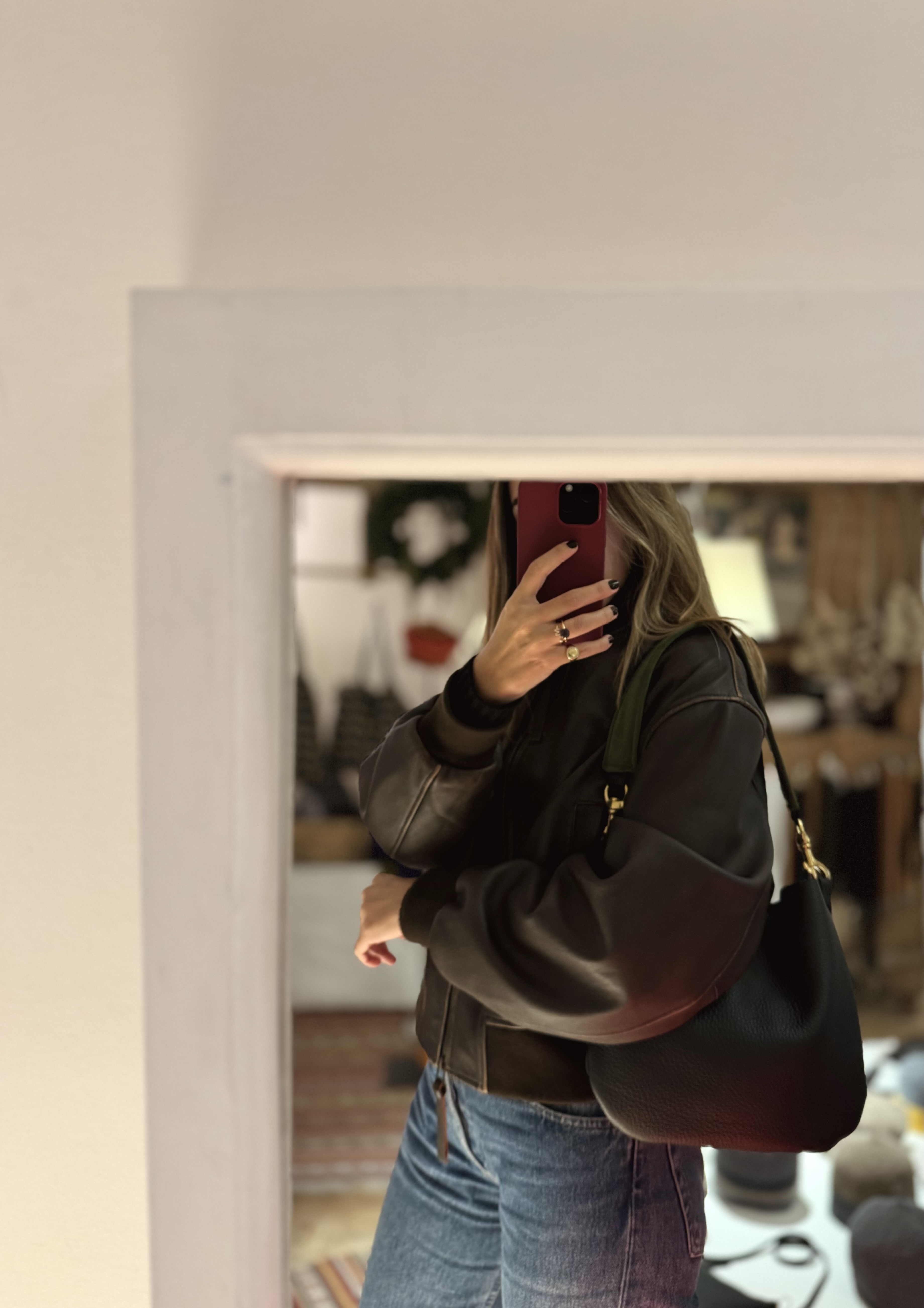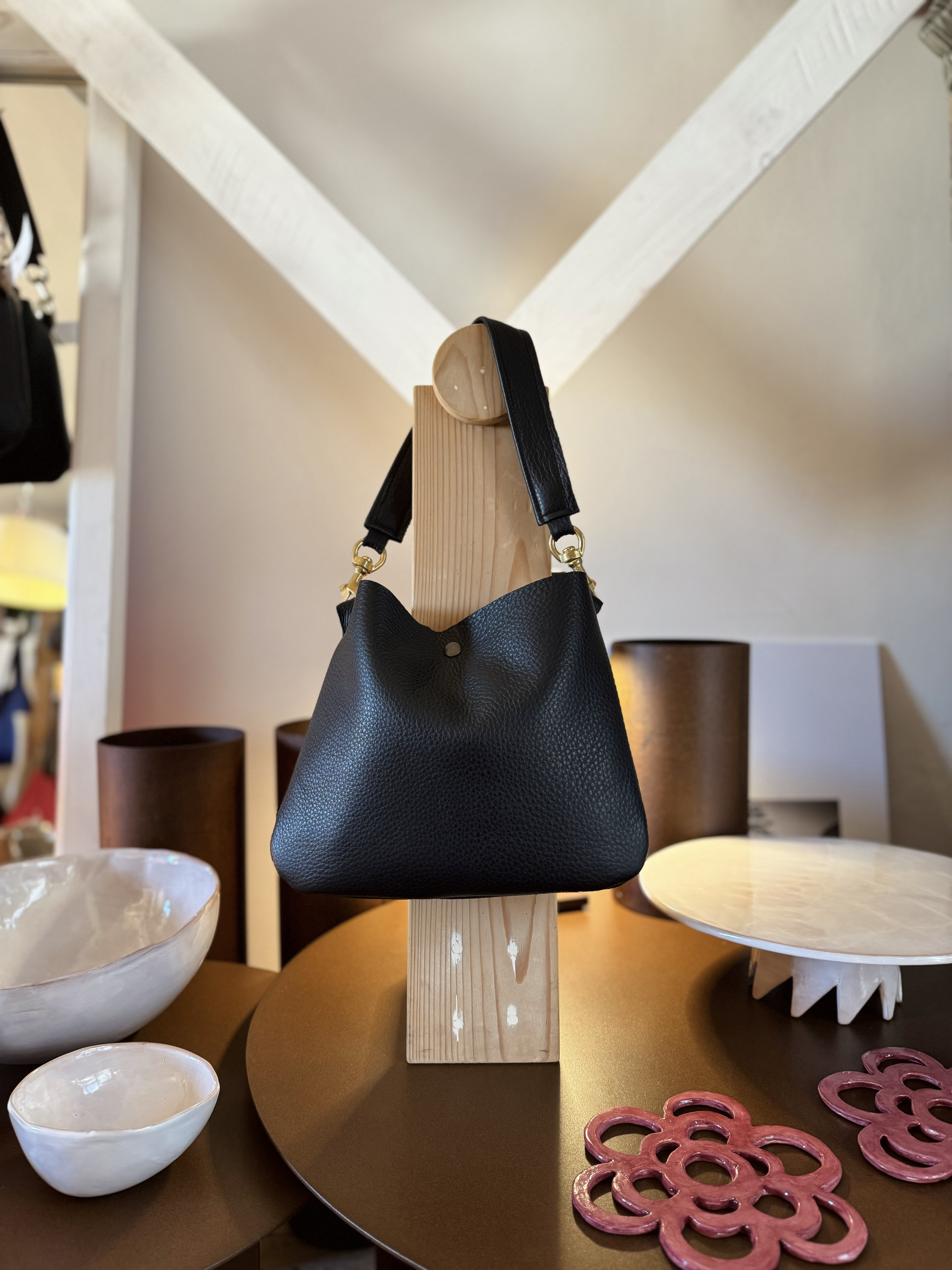 La sacca in pelle martellata nera.